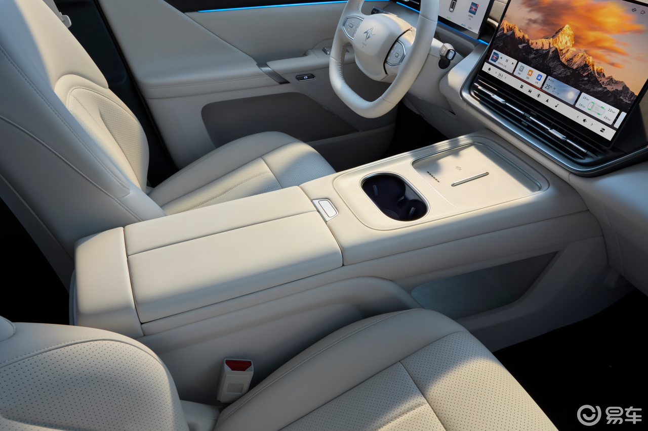 内饰设计则兼具质感与温度,车内触手可及之处,面料全面升级为“云感亲肌”超软材质,搭配全新内饰色“暖山玉白”,大幅提升了内饰的质感。细节之处更显人性化,经过改良的50W无线充电面板,表面采用仿麂皮材质,有效防止滑落;电释放内门把手采用按键开启设计,轻触即开;主副驾标配LED柔光美妆镜,光线柔和不刺眼。一系列优化从日常场景出发,让便利性与幸福感融入每一次出行。