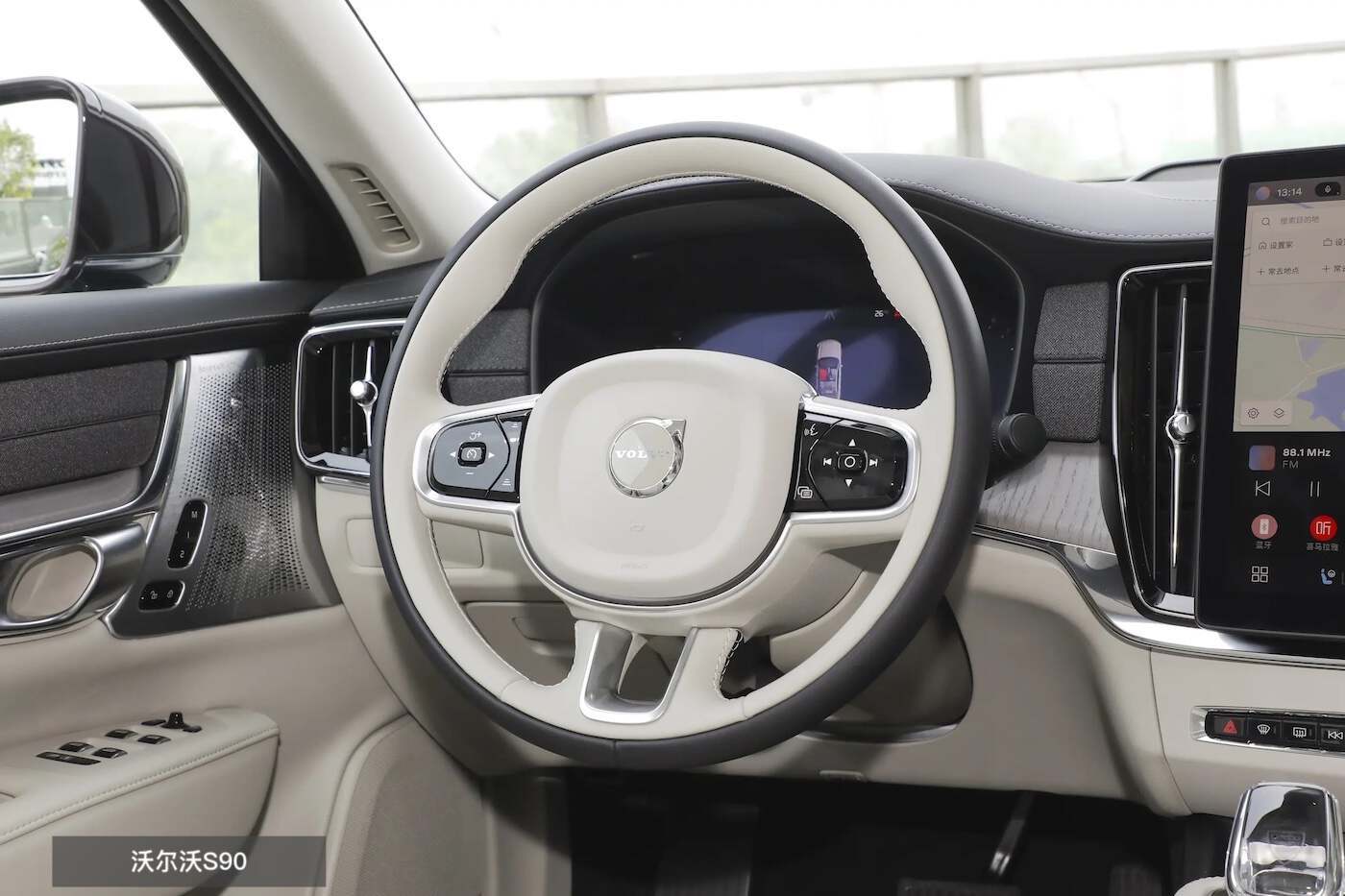 沃尔沃S90这边也是重心偏转设计,但在嵌入式12.3英寸仪表盘外,中控为较特别的11.2英寸纵置触控屏,下方带有短促的电子挡把并可升级Orrefors水晶材质,而多区域的镂空处置与环保织物材料,能让这里看上去更简洁时尚一些。