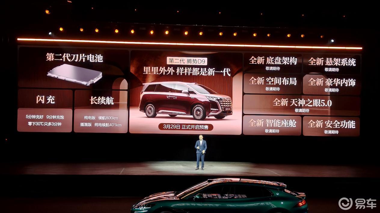 就在我以为品鉴会结束的时候,没想到还藏了一手,在现场直接发布了第二代腾势D9的预售价格,我简单看了一下第二代腾势D9的变化,内饰、动力、智能化基本上全面焕新了,也用上了第二代刀片电池。