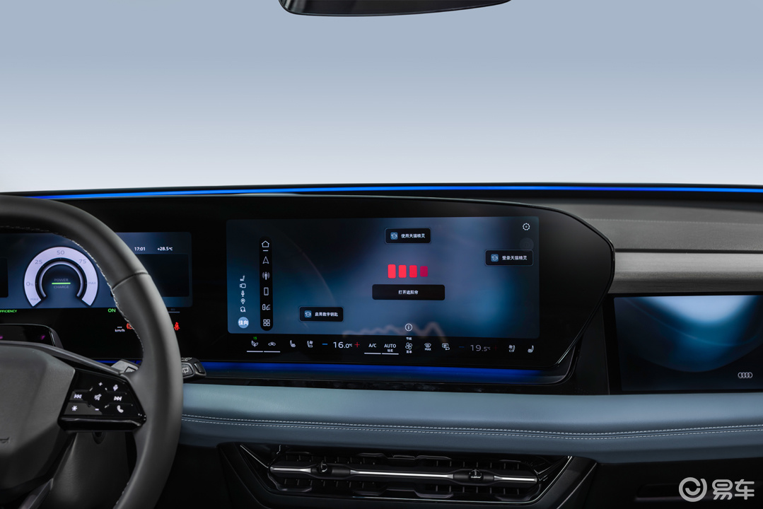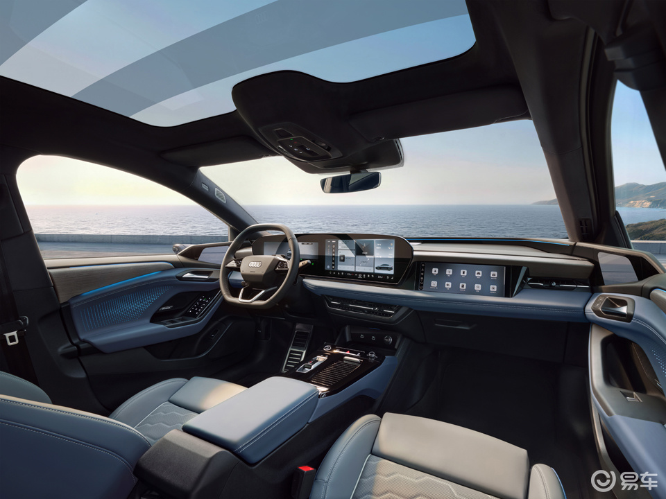 车内部分,A6L e-tron构建了“六屏联动”的数字舞台,包括11.9英寸虚拟座舱、14.5英寸MMI中控屏、10.9英寸副驾娱乐屏、AR-HUD抬头显示以及两块电子外后视镜显示屏。其中,AR-HUD的等效尺寸达到了88英寸,能实现导航箭头与真实路况的虚实叠加。在交互层面,新车与思必驰联合开发了智能语音助手,支持60秒内连续识别10条指令,准确率超95%,并引入了创新的“眼神控车窗”功能——驾驶者只需一个眼神配合语音指令,即可控制车窗开闭。系统目前已支持四川话与粤语识别,Avatar语音形象也让交流更具温度。此外,1.88平方米的九分区可调光全景天幕支持毫秒级响应,紫外线隔绝率高达99.9%。